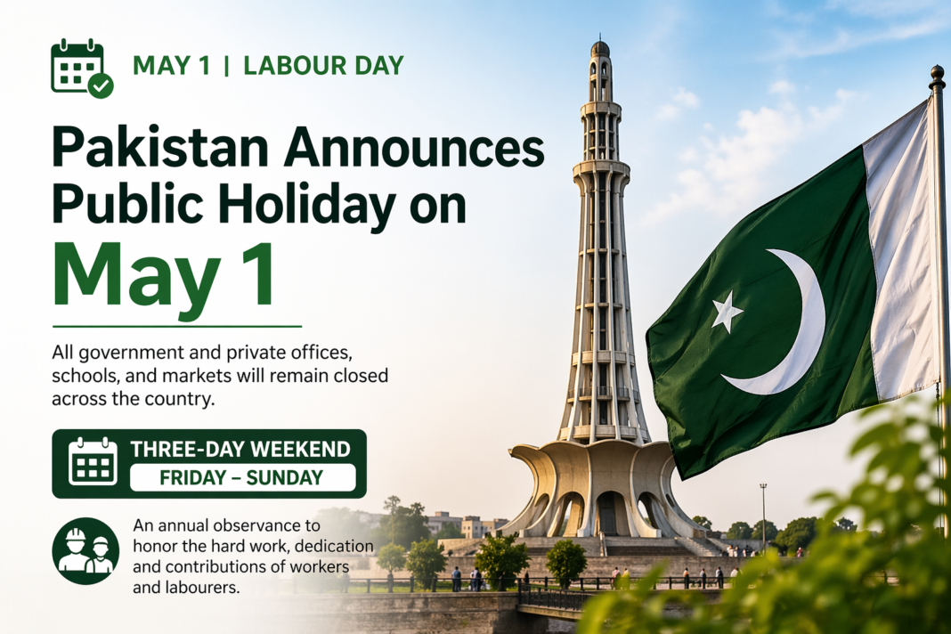 In a welcome move for workers across the country, Pakistan has officially declared a nationwide public holiday on May 1 in observance of Labour Day. The announcement brings a refreshing three-day weekend for many, as the holiday falls on a Friday this year, extending through Sunday.